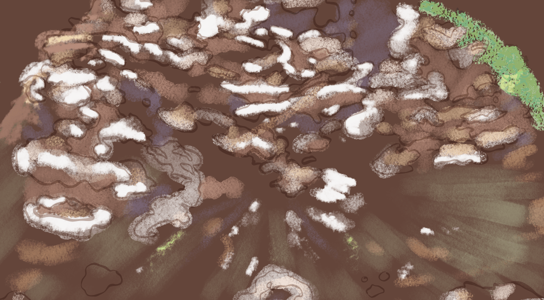 So this is a sketch of some fungi – I think maybe ‘dyer’s mazegill’, a fungus that was used by painters to produce ochre hues. I’m not completely sure though, because this is growing like a polypore in a bracket-like formation.
