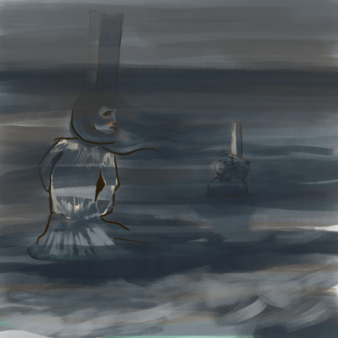 This grim (or trying to be grim) image is attempting to depict the ‘Wigtown Martyrs’. I’ll not pretend to know my history, because although I am fascinated by the human story, I struggle to remember the huge complexity of it. The martyrs were two women, both called Margaret, prosecuted as Covenanters in the late 17th Century. Their sentence was to be drowned at stake on the incoming tide, with the older, 63 year old, Margaret staked deeper so as to give the other Margaret, a teenager, a chance to renounce in time. This ploy was to no avail. It’s a very gruesome prospect, and makes me think how sometimes the suspense or expectation can be much, much worse than the actual event. To prolong a death sentence in such a way is such cruelty, it is hard to comprehend. I’m aware of far more gory practices having taken place, but this might be the worse sentence psychologically.