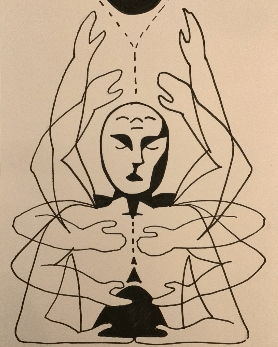 I’ve tried to capture this feeling and energy in this image. Inevitably, it is a dynamic sketch, showing a static heaviness in the resting arms, moving to reach up to the sky.